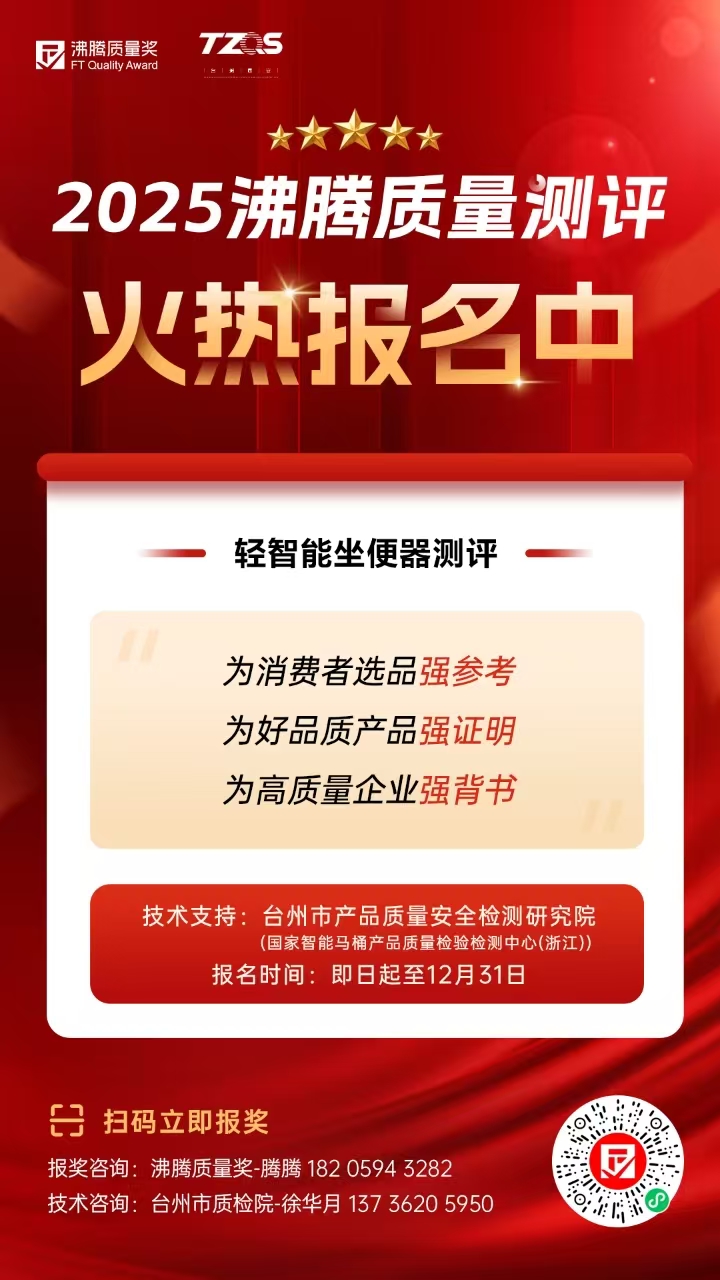 本期沸騰質量獎測評中,臺州市產品質量安全檢測研究院作為輕智能坐便器品類指定檢測單位,將秉著科學、嚴謹、專業、公正的態度,為本期測評全程提供技術支持。